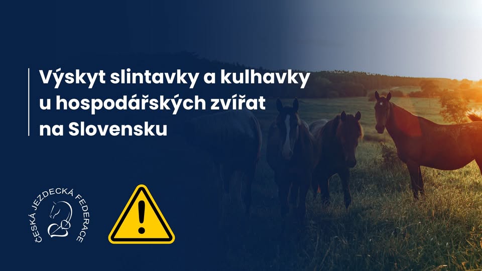 To se mi líbí KomentářeVzhledem k četným případům onemocnění slintavkou a kulhavkou na území SR je, pokud plánujete transport koně/koní do této země, nutné následující: ▪️počítat s intenzivními kontrolami na slovenských hranicích (je třeba mít připraveny veškeré náležitosti, včetně TRACES), ▪️ověřit si dopředu s pořadatelem konkrétních závodů, zda se tyto budou opravdu konat, popř. jaká jsou aktuální platná opatření. V současnosti Slovenská jezdecká federace nevydala plošný zákaz pořádání národních závodů, nicméně je třeba sledovat aktuální vývoj jak na stránkách SJF, tak zejména na webu Státní veterinární správy SR a ČR.