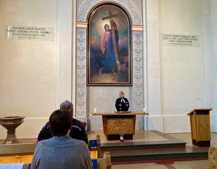 V našem plzeňském kostele U pastýře sloužíme pravidelně v neděli v 18 hodin večerní chvály. 14. září nám posloužila kázáním evangelická farářka a nemocniční kaplanka Juliana Hamariová.