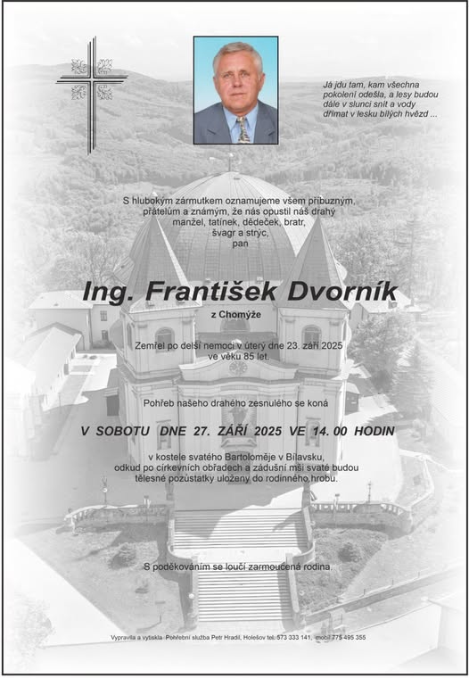 V sobotu 27. září 2025 se v bílavském kostele blízcí a přátelé naposledy rozloučili s Ing. Františkem Dvorníkem.