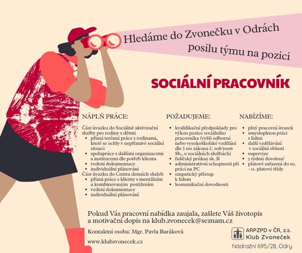 🔎 Hledáme sociálního pracovníka do Sociálně aktivizační služby pro rodiny s dětmi a Centra denních služeb na plný úvazek. Pomůžete nám jej najít. Budeme rádi za sdílení ✨.