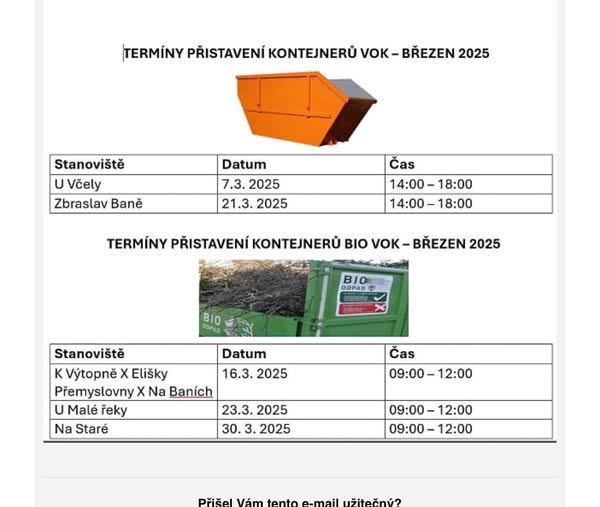 Termín přistavení kontejnerů – březen 2025 🪴🌱🌲.