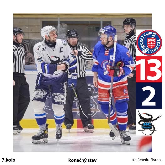 ❌PROHRA❌ Těžký zápas v Litomyšli končí vysokou porážkou 13:2 (3:0, 2:2, 8:0). Po bojovné druhé třetině nám absolutně nevyšla ta třetí, ve které jsme inkasovali osm gólů. 🫥 Do utkání jsme nastoupili v oslabené sestavě kvůli zraněním a nemocem několika hráčů naší sestavy.