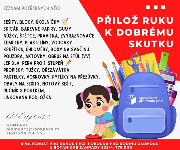 🖍️📚 Sbírka školních potřeb pro děti v nouzi 📚🖍️ Rádi bychom vás poprosili o pomoc, formou darování školních potřeb 🎒✏️ pro rodiny našich klientů, které se nacházejí v obtížné životní situaci. Sbírka probíhá v rámci našich sociálně aktivizačních služeb, které poskytuje pobočka pro rodinu Olomouc. Děti v těchto rodinách, často bohužel nemají ani základní školní potřeby.