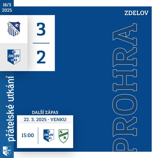 Druhý přípravný zápas prohráváme 3:2 🔵⚪️ Po předchozí výhře změřili naši fotbalisté síly s rezervou Týniště nad Orlicí. Utkání se hrálo na všesportovním stadionu v Týništi a zdelovští fotbalisté nastoupili vinou velkého množství omluvenek ve značně kombinované sestavě. Od úvodu hráči Týniště diktovali tempo hry a vytvářeli si příležitosti.
