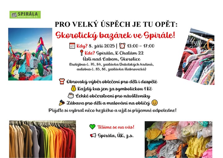 Již za týden proběhne v prostorách naší organizace bazárek s oblečením. Srdečně zveme všechny zájemce.