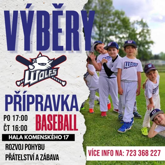 Baseballový klub Wolfs Domažlice zahajuje VÝBĚRY dětí do BASEBALLOVÉ PŘÍPRAVKY - ročníky 2018,2019 a 2020. Tréninky jsou vedeny trenéry s letitými zkušenostmi s dohledem fyzioterapeuta. Baseballová přípravka má jeden hlavní cíl, a tím je vzbudit v dětech vášeň ke sportu a rozvíjet pohyb zdravou a zábavnou formou.