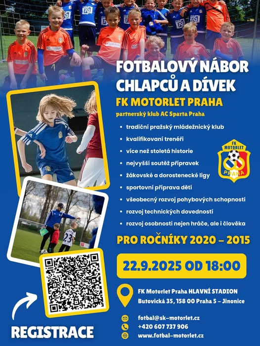 ⚽️ Staň se součástí FK Motorlet Praha. ⚽️ Hledáme nové fotbalisty i fotbalistky do našich přípravek. 🚀 📍 Kdy: 22.