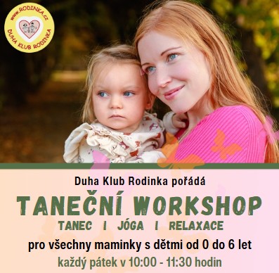 🌟 Pozvánka na taneční workshop pro maminky s dětmi (0-6 let) 🌟 Milé maminky, připojte se k nám na speciální taneční workshop, který je určený právě pro vás a vaše malé tanečníky. 💃🕺 🗓 Kdy: Pátek, 10:00 - 11:30 📍 Kde: Světluška, Šířava 1295/27, Přerov 750 02 Co vás čeká. Společný pohyb a zábava: Strávíte kvalitní čas se svými dětmi při tanci, což posílí vaše vzájemné pouto.