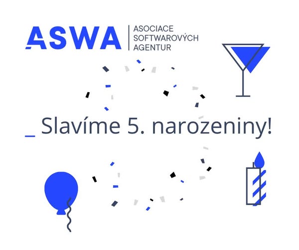 🎉 Slavíme 5 let ASWA. 🎉 Před pěti lety vznikla Asociace softwarových agentur (ASWA) s jasnou vizí – spojit síly českých softwarových IT studií, podpořit férové podnikání a sdílet know-how. Dnes můžeme s hrdostí říct, že jsme toho společně dosáhli víc, než jsme si na začátku dokázali představit.