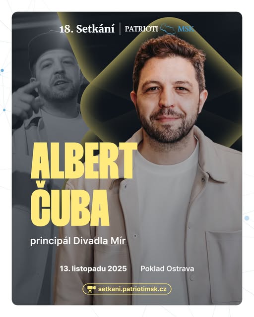 Představujeme dalšího řečníka 18. Setkání Patriotů MSK: Produkt & marketing. 📣 Královsky nás inspiruje Albert Čuba — principál Divadlo Mír, muž asi deseti profesí, ale především úspěšný podnikatel, který proměňuje ostravskou kulturu.