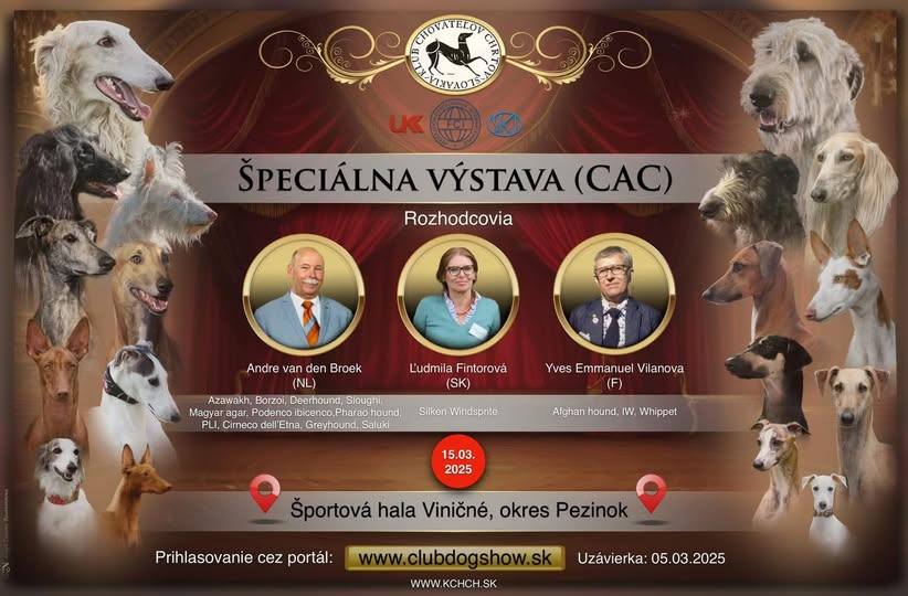 Srdečne Vás pozývame na Špeciálnu výstavu slovenského Klubu chovateľov chrtov🤗❤️ Web: https://www. kchch. sk Prihlasovanie: https://www.