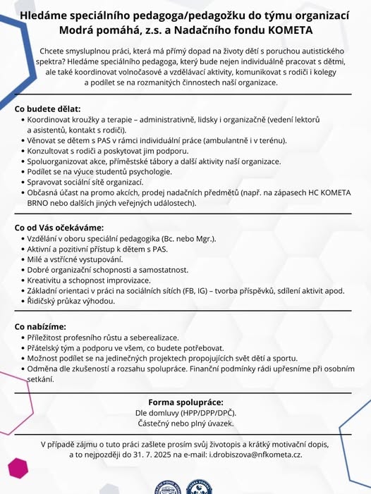 Hledáme kolegu/kolegyni do týmu. 💙 V případě zájmu nám zašlete Váš životopis na i. drobiszova@nfkometa.