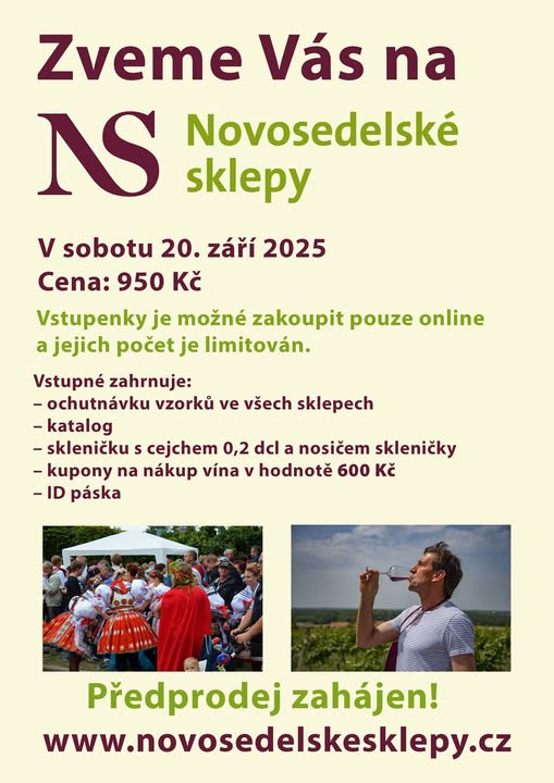 Přijďte zažít den plný vína, tradic a podzimní atmosféry. 🍷 Otevřené sklepy a novosedelské vinobraní. Již za dva týdny.