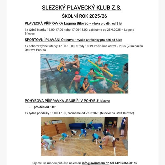 Slezský plavecký klub z.s. - Swimteam.cz Plavání dětí, plavecká přípravka, pohybová přípravka Bílovec, Ostrava, Studénka