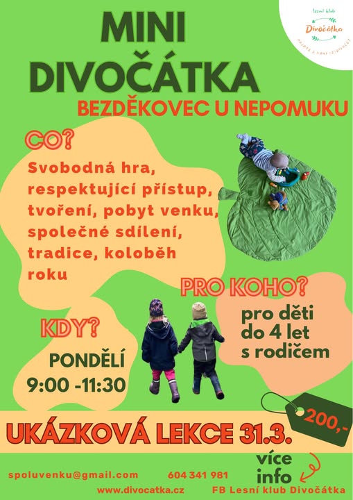 Všechno klíčí, kvete, roste… 🪻🌷🌼 a u nás taky klíčí jedna NOVINKA. Pondělní dopoledne budou od konce března patřit MINI DIVOČÁTKŮM v doprovodu rodičů. Těšit se budeme na ukázkové lekci 31.