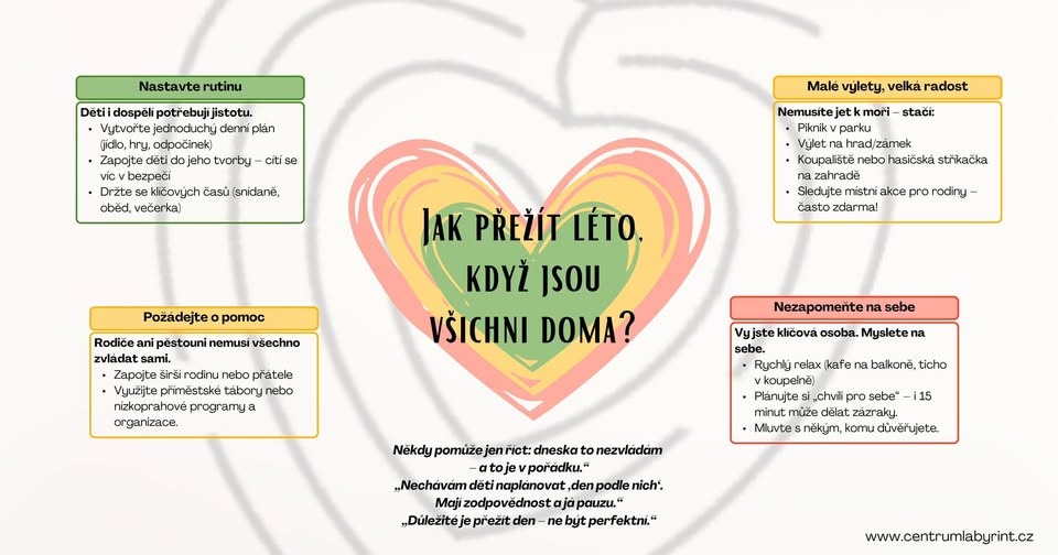 ☀️ Jak přežít léto, když jsou všichni doma. Prázdniny mohou být krásné, ale i pořádná výzva – obzvlášť pro pěstouny a rodiče, kteří pečují o děti s různými potřebami. 👉 Vytvořili jsme pro vás přehledné tipy, jak zvládnout léto s dětmi doma – a nezapomenout přitom ani na sebe.