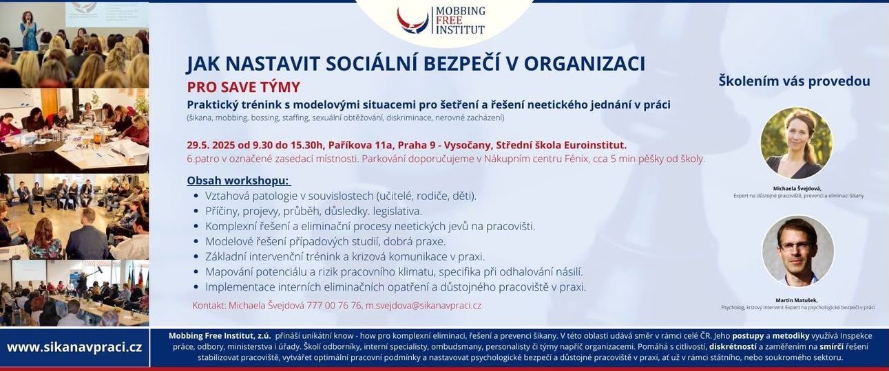 Experti na prevenci a eliminaci šikany a důstojné pracoviště.