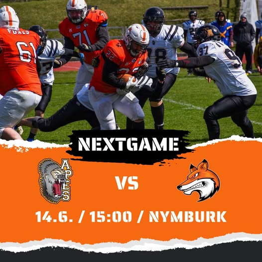 Poslední zápas sezóny 2025 Základní část sezóny uzavřeme zápasem proti týmu Nymburk Apes 🦍 📍 Kde: Nymburk 📅 Kdy: 14. 6. , 15:00 #taborfoxes #nymburkapes.