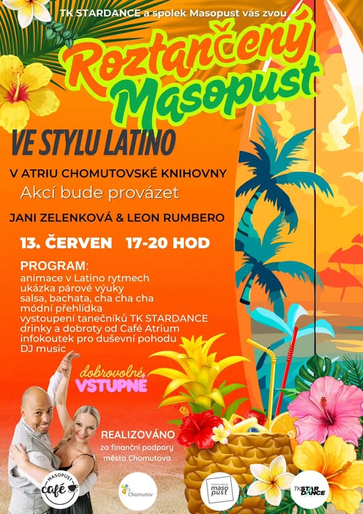 🔥 ROZTANČENÝ MASOPUST V CHOMUTOVSKÉ KNIHOVNĚ. 🔥 Už tento pátek 13. června ožije atrium knihovny vášní a rytmem Karibiku.