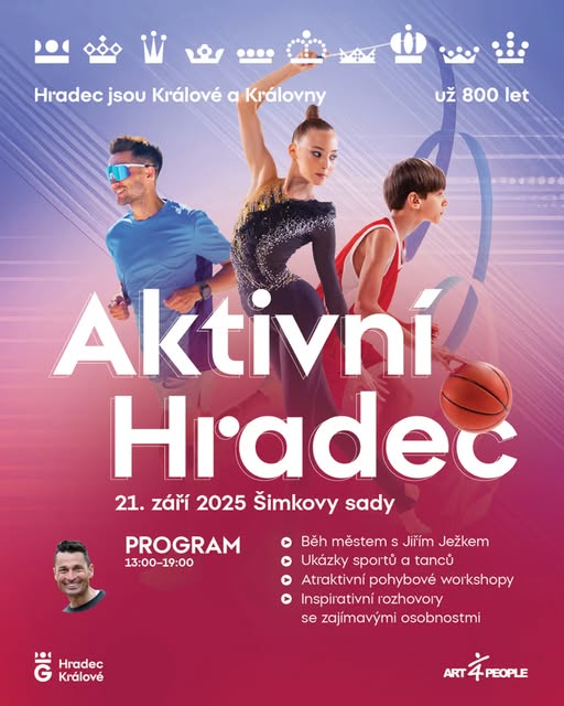Aktivní Hradec, den plný pohybu s paralympijským vítězem Jiřím Ježkem. 🏃➡️ 5 a 10 km běh městem 🏀 atraktivní sportovní workshopy 🛴 show extreme sportů, slackline a další 🎤 inspirativní rozhovory 🤴 a hosté ze světa sportu a aktivního životního stylu Neděle 21. září 2025.