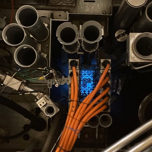 Pohled do aktivní zóny reaktoru LVR-15 v Centrum výzkumu Řež.