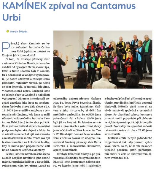 Kamínek – smíšený pěvecký sbor z Kamenice nad Lipou Kamínek je dobrovolnou zájmovou organizací sdružující zájemce o sborový zpěv.