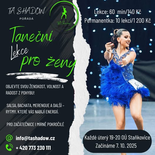 💥 STARTUJEME JIŽ ZÍTRA. 💥 Taneční lekce pro ženy jsou zpět – salsa, bachata, merengue a další rytmy, které tě nabijí energií a dobrou náladou. Přijď objevit svou ženskost, volnost a radost z pohybu 💚 📍OÚ Staňkovice 🕖 Každé úterý 19:00–20:00 Začínáme 7.