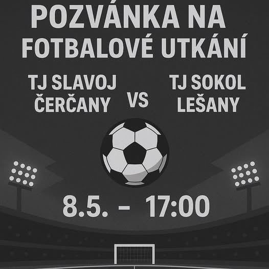 Dobrý den/ahoj, dovolujeme si vás pozvat na dohrávku odloženého utkání s mužstvem Lešan. ⚽️ Hraje se netradičně ve čtvrtek. Tradiční pivko, klobása a neuvěřitelné sportovní výkony však chybět nebudou.