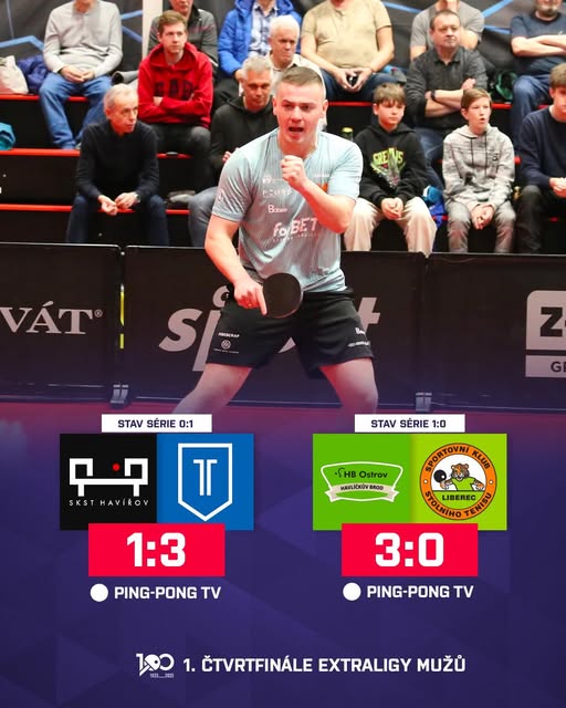 HB Ostrov Havlíčkův Brod začal čtvrtfinále domácí výhrou, TTC-Ostrava 2016 veze první bod z Havířova 👊🏻 Souhrn 📲 https://www. ping-pong. cz/article/ostrava-veze-vyhru-z-havirova.