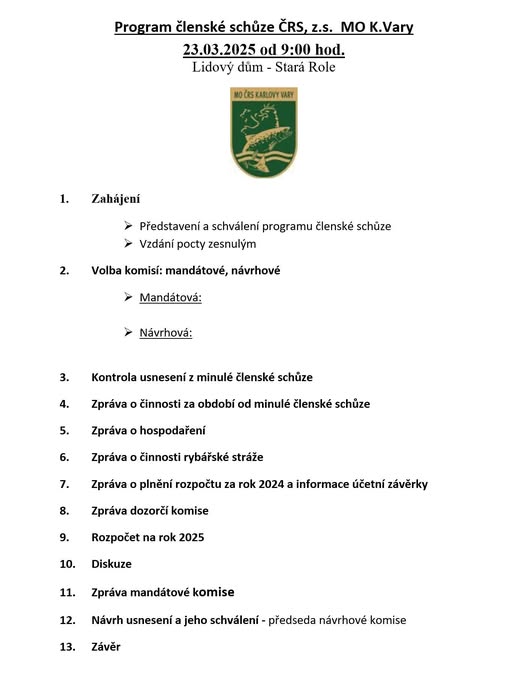 Český rybářský svaz místní organizace Karlovy Vary.