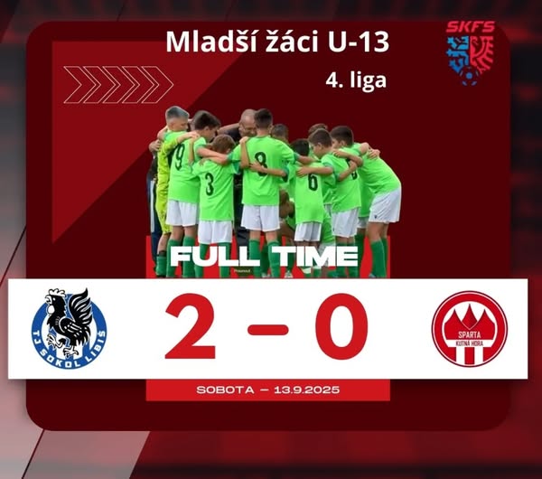 👉 mladší žáci 👈 Fantastický výkon všech hráčů, od gólmana po posledního útočníka. V dnešním zápase porážíme dosavadního lídra tabulky Spartu Kutná Hora 2:0 (0:0) 👍. Krátké hodnocení - https://www.