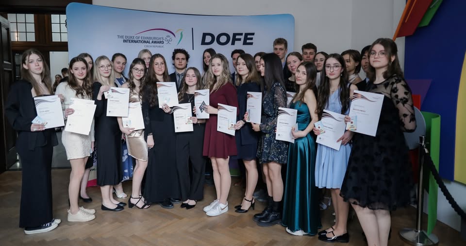 V polovině března 2025 proběhla slavnostní bronzovo – stříbrná ceremonie DofE v Becherově vile v Karlových Varech. Za naši školu byli slavnostně vyznamenaní čtyři úspěšní absolventi: Ondřej Kalivoda a Michal Strnad z 5. A, Klaudie Skalková ze 7.