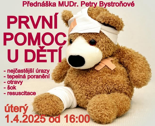 Dobrý den, milí rodiče, dovolujeme si Vás pozvat na 🔔🔔🔔POSLEDNÍ přednášku 🩺MUDr. P. Bystroňové v tomto školním roce 🩹🤕"První pomoc u dětí"🤕🩹 👉 první pomoc u nějčastějších úrazů, tepelných poranění, otrav, ale také základy resuscitace na resuscitační figuríně 👉 pro členy Rodinky (DS Rodinka, DS Miniškolka Rodinka, DS Rodinka Svinov, BabyClub, BabyGym) 👉 v 📌úterý 1.