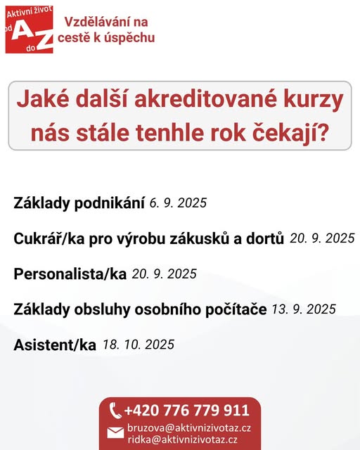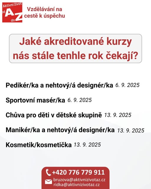 Pro více informací o všech akreditovaných kurzech utíkejte na web aktivnizivotaz. cz.