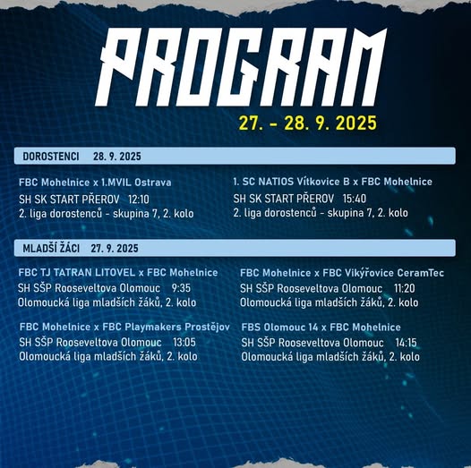 O víkendu nás čeká nabitý program 🔥 Mladší žáci vyrazí do Olomouce, dorostenci pak do Přerova. 💪 Držíme všem našim klukům palce, ať se jim daří a přivezou domů co nejlepší výsledky. #fbcmohelnice #spolecnebojujemespolecnevitezime #florbal #ceskyflorbal #olomouckykraj.