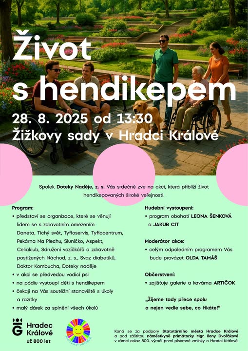 Zveme vás na akci Život s hendikepem Tento čtvrtek 28. 8. proběhne od 13:30 v Žižkových sadech představení organizací, které se věnují lidem se zdravotním postižením.