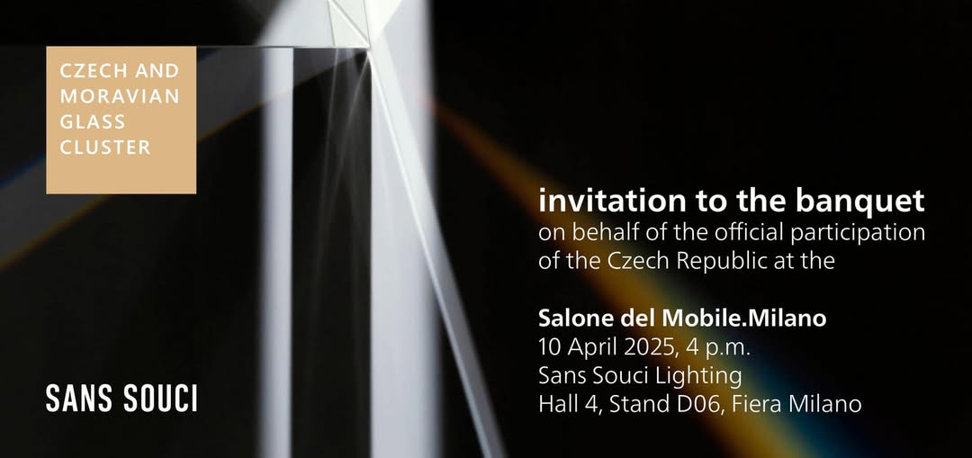 Pozvánka a veletrh Salone del Mobile & Euroluce 2025, Miláno ✨ Recepce banquet se bude konat ve čtvrtek 10. 4. od 16:00 na stánku sklářské firmy Sans Souci Lighting 🇮🇹.