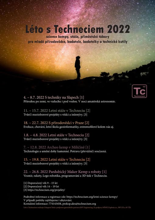 Chcete strávit léto s vědou a technikou. Zúčastněte se některého z našich kempů, stáží nebo příměstských táborů. Začínají již 4.