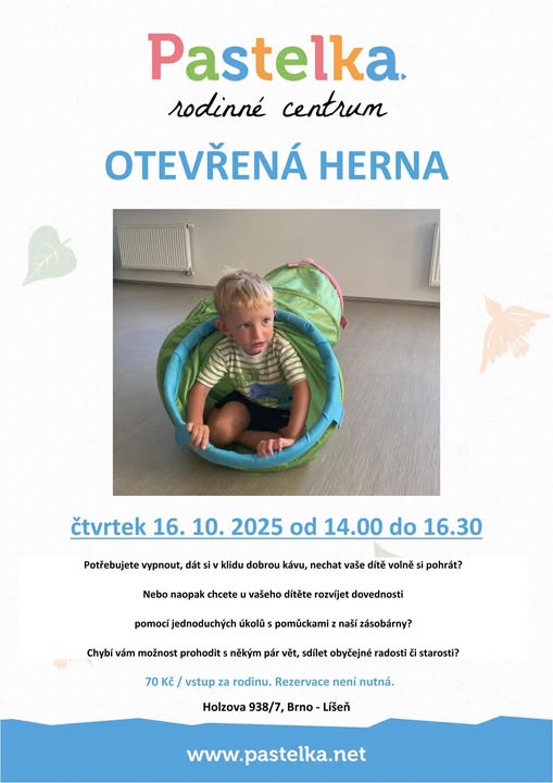 Rodinné a mateřské centrum Pastelka | RC Pastelka Hlavní činností ústavu je: realizovat aktivity a poskytovat služby sloužící k prevenci sociálně patologických jevů společnosti, k prevenci sociálního vyloučení rodičů, na podporu sladění pracovního a rodinného života jako provoz zařízení péče o děti, příležitostné krátkodobé hlídání, dětské skupiny, mikrojesle nebo příměstské tábory, poskytovat odborné vzdělávací aktivity /kurzy, semináře, workshopy/ pro veřejnost v oblasti výchovy, péče o dítě, zdravého životního stylu, v oblasti rozvoje osobnosti jednotlivých členů rodiny, poskytovat odborné vzdělávací aktivity /kurzy, semináře, workshopy/ na podporu zdravých partnerských i manželských vztahů a posilování rodičovských kompetencí, organizovat zájmové kroužky a volnočasové aktivity pro jednotlivé členy rodiny, realizovat publikační činnost, realizovat poradenskou a konzultační činnost, pořádat a organizovat komunitní akce, podporovat rovnost žen a mužů a jejich rovných příležitostí, prosazovat zájmy rodin na úrovni samosprávy městské části a statutárního města Brna.|Vedlejší činností ústavu je: zpřístupnění prostor.