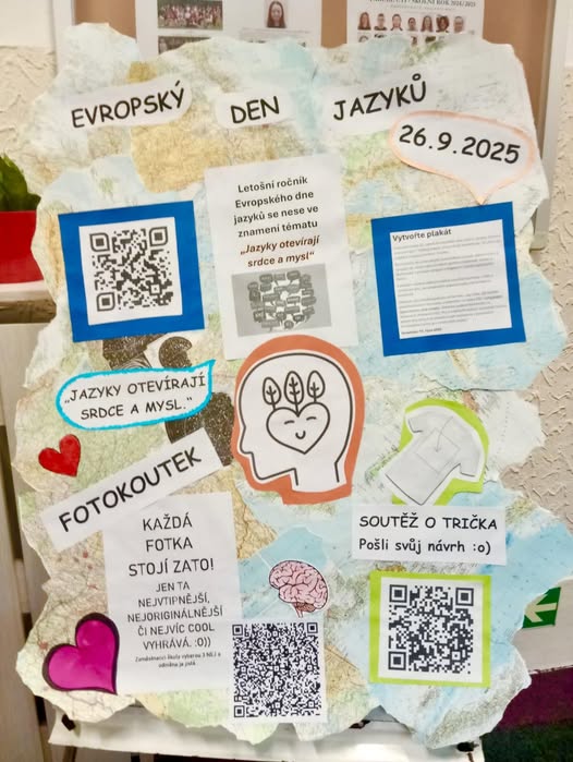 📢 V pátek 26. 9. 2025 opět po roce slavíme Evropský den jazyků🌍✨ Ve vestibulu školy najdete foto koutek 📸 – fotografie budou ihned vkládány na Padlet.