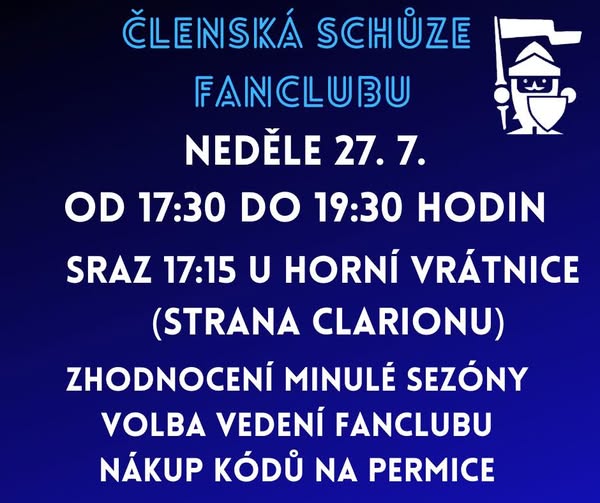 Informace o členské schůzi. Vítkovičtí, členská schůze Fanclubu se uskuteční v neděli 27. 7.