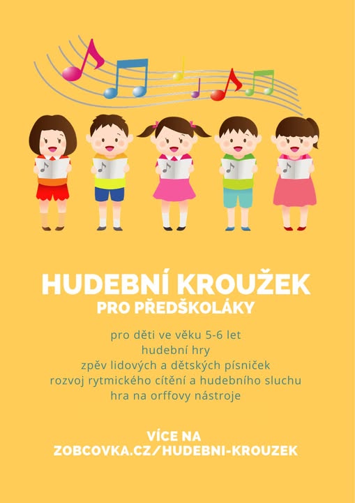 I v letošním roce nabízíme výuku hudebních dovedností pro nejmenší. Pokud máte doma malého muzikanta, nejste ještě rozhodnuti pro konkrétní nástroj nebo jste nestihli přijímačky, můžete využít hudební kroužek paní učitelky Macháčové :-).