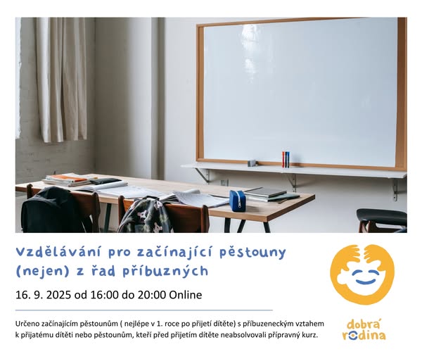 👨👩👧👦 Vzdělávání pro začínající pěstouny (nejen z řad příbuzných) 📅 16. 9. – 21.