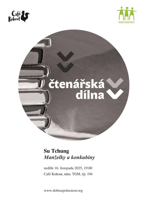 Čtenářská dílna s knihou Manželky a konkubíny byla kvůli nemoci přesunuta na neděli 16. listopadu. Chystá se i malé překvapení, které nás zasvětí do čínského kontextu.