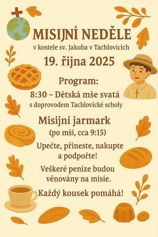 🍂 MISIJNÍ NEDĚLE V TACHLOVICÍCH 🍂 Zveme vás srdečně do kostela sv. Jakuba v neděli 19. října 2025.