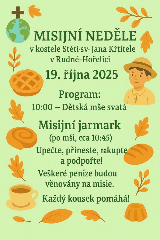 🌍 MISIJNÍ NEDĚLE VE STĚTÍ 🌿 Srdečně vás zveme v neděli 19. října 2025 do kostela sv. Jana Křtitele v Rudné Hořelici.