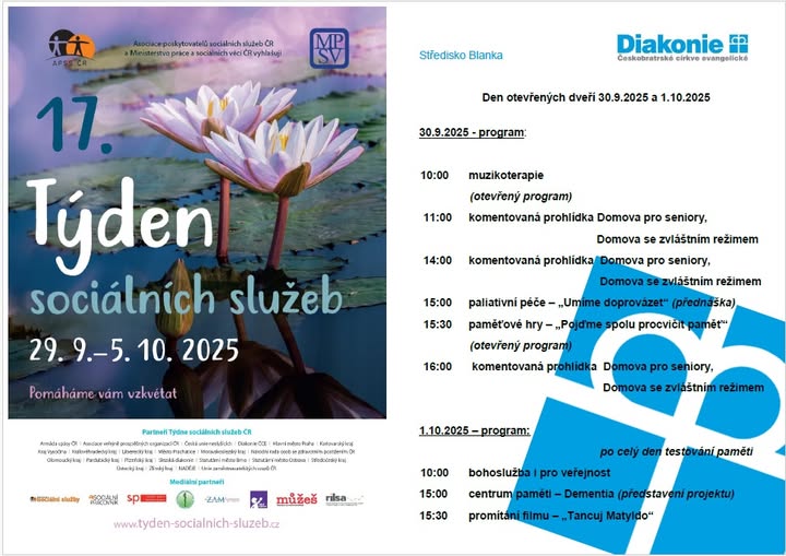 Týden sociálních služeb 2025 se blíží. Srdečně vás zveme na Dny otevřených dveří v Diakonii ČCE – středisku Blanka v Písku, které se uskuteční 30.