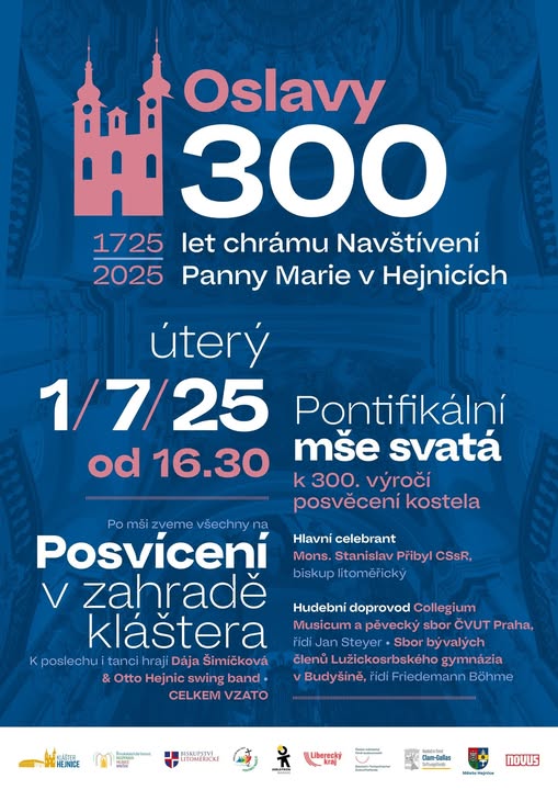 300 let je jen jednou za 300 let a my chceme toto výročí oslavit s vámi. Proto, stejně jako před třemi sty roky, 1. července, v předvečer svátku Navštívení Panny Marie, vstoupí do hejnického kostela procesí vedené litoměřickým biskupem Stanislavem Přibylem.