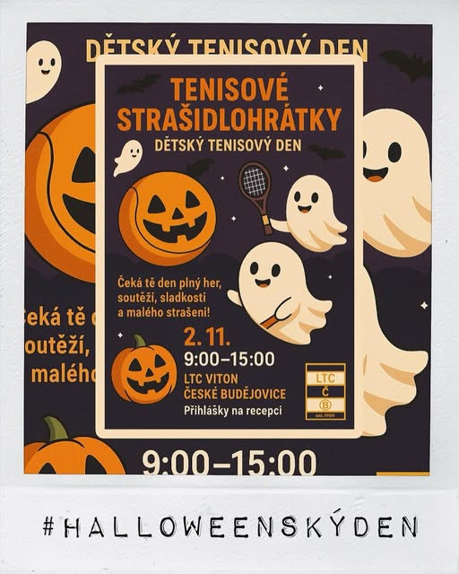 🎃 Podzim je tu a s ním i čas na dalši tenisový den - halloweenský 👻 🗓️ 2. 11. 2025 ⏰ 9:00-15:00 🧑🧑🧒🧒 Čeká nás den plný pohybu, soutěží, her, halloweenské zábavy - a samozřejmé spousta tenisu .
