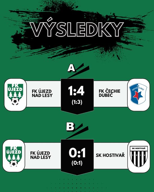 VÝSLEDKY ⚽️ A-tým FK Újezd nad Lesy 🆚 FK Čechie Dubeč ❌ 1:4 (1:3) B-tým FK Újezd nad Lesy 🆚 SK Hostivař ❌ 0:1 (0:1) #fotbal #fkujezd.